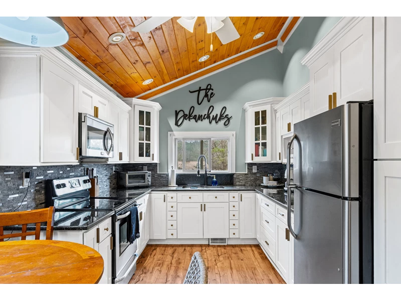 You may recognize this one... Featured on Lakefront Bargain Hunt Renovation (Season 4, Episode 8), this Sacandaga Lake-access home is back & better than ever. Step into your own Adirondack getaway where charm meets thoughtful updates. The home is now brighter with hardwood floors and exposed beams creating a warm, inviting feel throughout. The kitchen delivers with granite counters, tile backsplash, and vaulted knotty pine ceilings. Recent updates include a new HW tank, new wood stove (ready to be connected), and an upcoming bathroom refresh with ceramic tile flooring and added stackable washer & dryer for everyday convenience. The DREAM 4-car garage is a standout, heated, with 100-amp electric, water, loft space, and lift. Whether you're a car enthusiast, hobbyist, or need serious storage, this space delivers. Outside, enjoy a laid-back lifestyle with room for gardens, or even chickens plus an enclosed porch for extra guests or quiet mornings. Lake life made easy, just across from Sacandaga Lake, this property includes deeded 10' lake access permit (just $50/year), owned staircase, & shared dock with neighbor, your gateway to endless summer days on the water. Many furnishings are included, just bring your bags and start enjoying. Whether you remember it from TV or are discovering it for the first time, this is your chance to own a piece of Sacandaga charm, updated and ready for your best summer yet!
